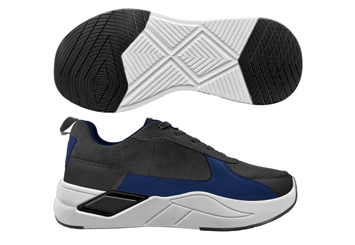 BLACK , navy blue UPPER and white midsole, black outsole.